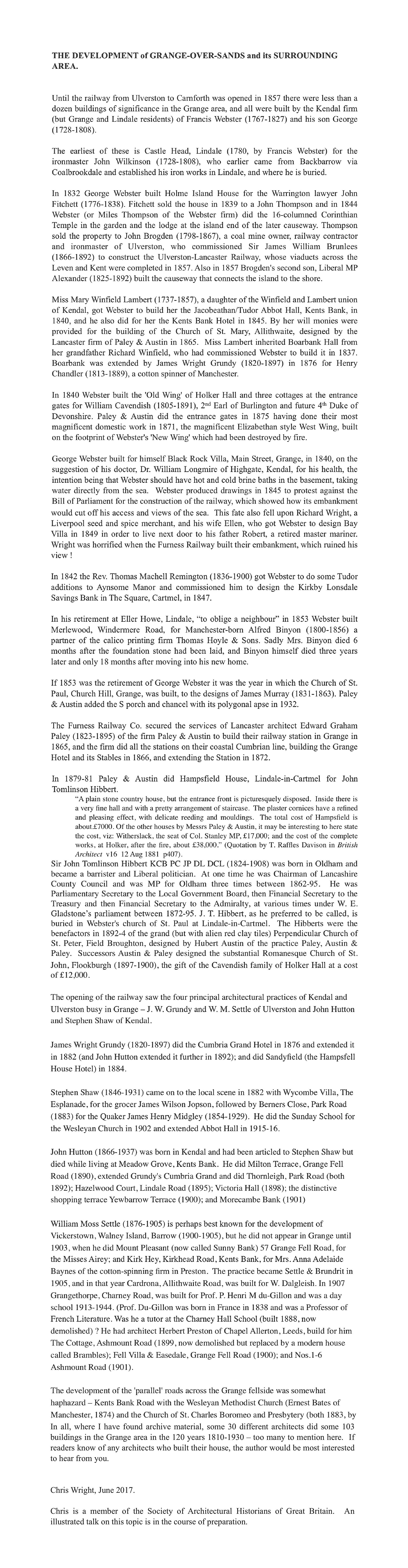 The following articles will equip the reader with enough information to astound even the most ardent Conservation Planner in South Lakes District Council or enable him to hold court, earning many a free drink, in any of the residents’ lounges in any of the historic Grange hotels, posing as ‘after dinner speaker’…